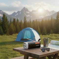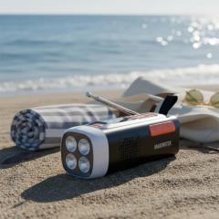 RESQ 200 on tehokas vedettävä radio, jossa on mainiot valaistustoiminnot. Voit kuunnella DAB+/FM-radiota, suoratoistaa musiikkia Bluetoothin kautta ja käyttää sisäänrakennettua akkua varavirtalähteenä. Lataus onnistuu USB-C:n, aurinkopaneelin tai käsikammen kautta. 360° ympäriinsä loistavan retkivalon ansiosta valoa on joka puolella, ja taskulampputoiminnolla saat tarvittaessa tarkemman fokuksen. Näin sinulla on aina virtaa, valoa ja musiikkia käden ulottuvilla.